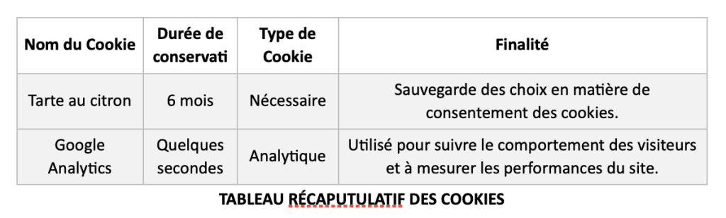 Nous utilisons GTM pour déployer des balises (tags) de suivi sur notre Site. Ces balises intègrent des cookies qui collectent des données de navigation (telles que l’adresse IP, le navigateur et l’appareil, les sites web visités et l’heure d’accès, les publicités affichées dans votre navigateur et sur celles sur lesquelles vous cliquez). Ces informations permettent : (i) Analyser le trafic : comprendre comment les visiteurs interagissent avec notre Site et améliorer leur expérience (ex., via Google Analytics) ; (ii) Diffuser des publicités ciblées : afficher des annonces personnalisées basées sur vos intérêts et votre comportement en ligne (ex., via Google Ads et Facebook Pixel) ; (iii) Suivre des conversions : mesurer l’efficacité des campagnes marketing et publicitaires.